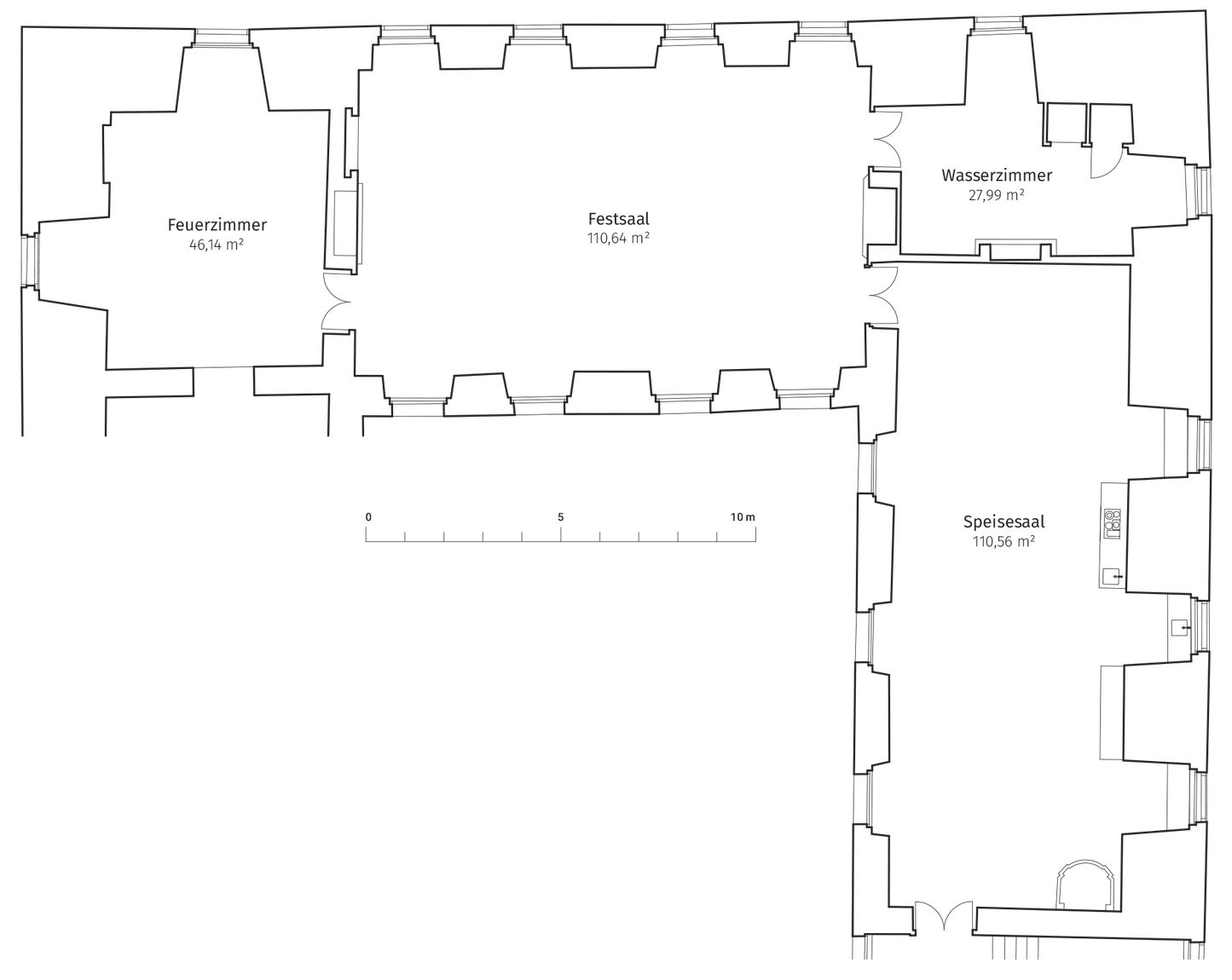 Für kulinarische Genüsse steht die Schlossküche (nur Sommerbetrieb) im Erdgeschoss oder die Küche im Speisesaal zur Verfügung. Für alle, die sich lieber bekochen lassen, organisieren wir gerne auch einen Caterer.